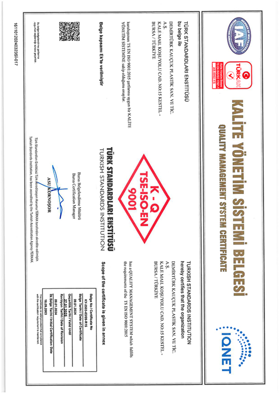Compliance and Standards: We ensure full compliance with relevant legal regulations and quality standards. We take all necessary measures to maintain and improve the quality of our products and services.