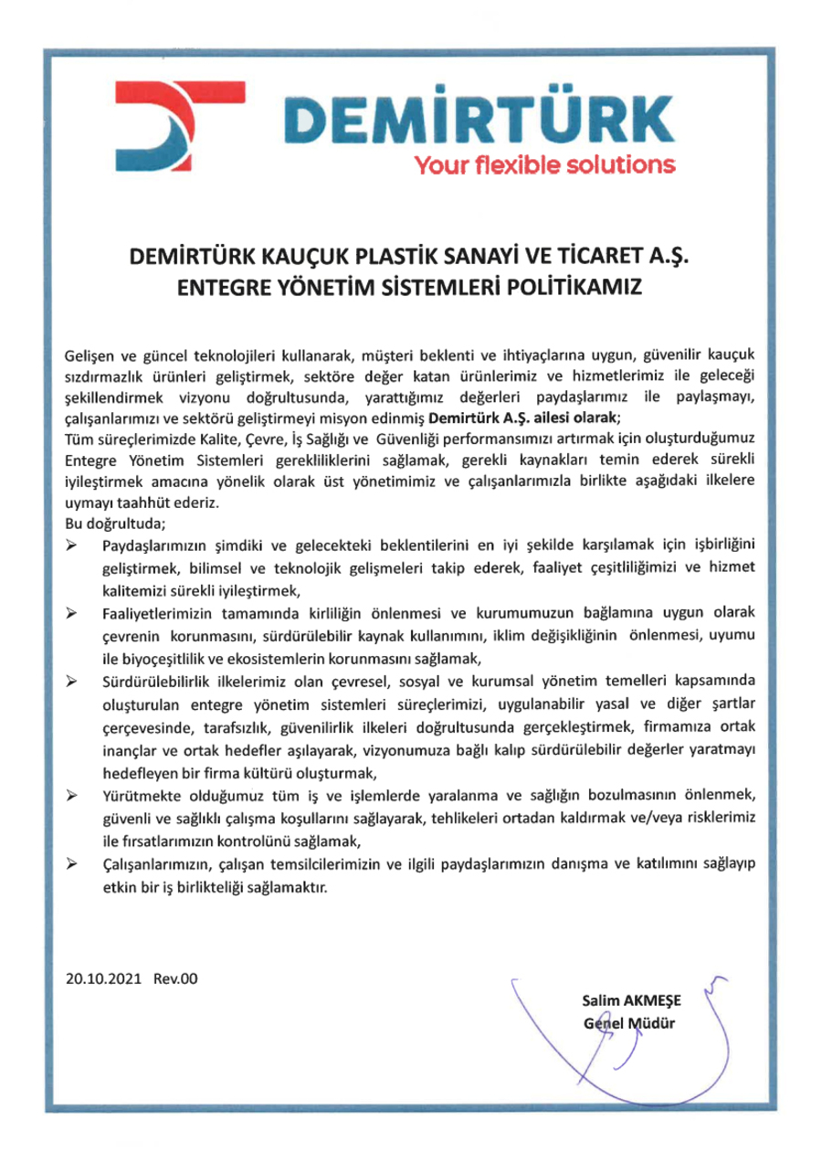 Çalışan Katılımı: Tüm çalışanlarımızın katkılarına saygı duyuyor ve onların yeteneklerini geliştirmelerini teşvik ediyoruz. Kaliteyi sağlamak ve sürdürmek için tüm çalışanlarımızın sorumluluklarını bilmesini sağlıyoruz.
